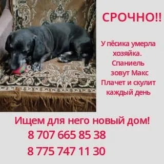 Срочно! У спаниеля Макса умерла хозяйка. Нужен новый дом! Тел. 87076558538, 87757471130.